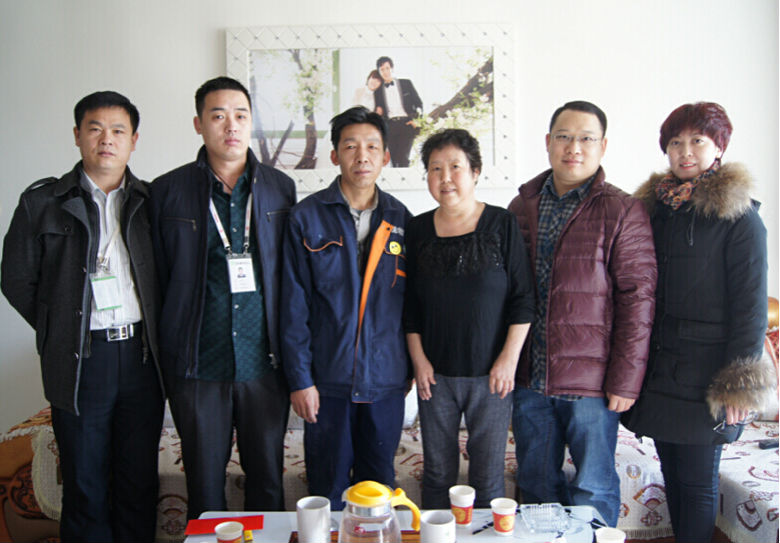 Am 11. Februar 2015, kurz vor dem traditionellen Neujahrs, der Direktor des Plans und Operations Center Herr Li Bo, die Leiterin der Verwaltungs Management Center Frau Sun Nan, der General Manager von Langfang Eigentum Zhang Li Jun, Projektleiter Du Zhen Qi, der Geschäftsführer von Bazhou Automotive 4S-Shop und Verwaltungsdirektor Zhang Wei kam an die Familien der vier Mitarbeiter in Schwierigkeiten mit voller Segen für das neue Jahr als auch 2500 RMB solatium zusammen mit Geschenke für die Feiertage, um die Pflege von der Speditionsgesellschaft.